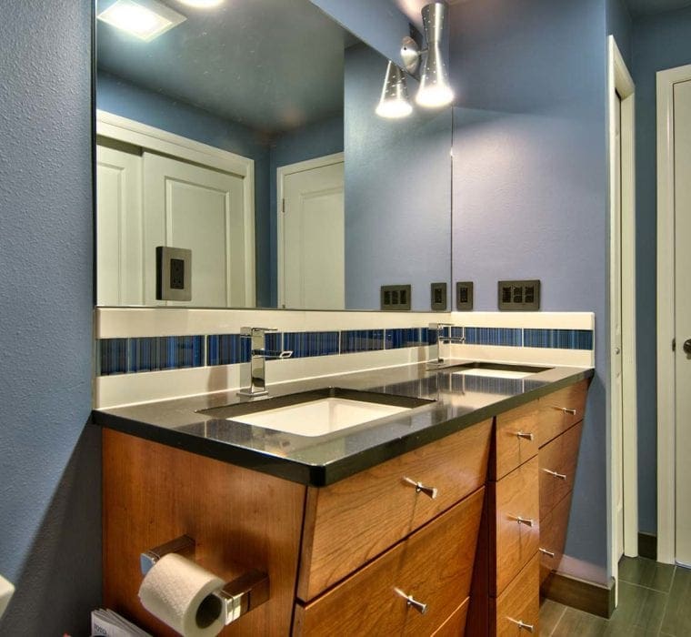 Capitol Hill master bath renovation in Seattle with double vanity and marble countertop